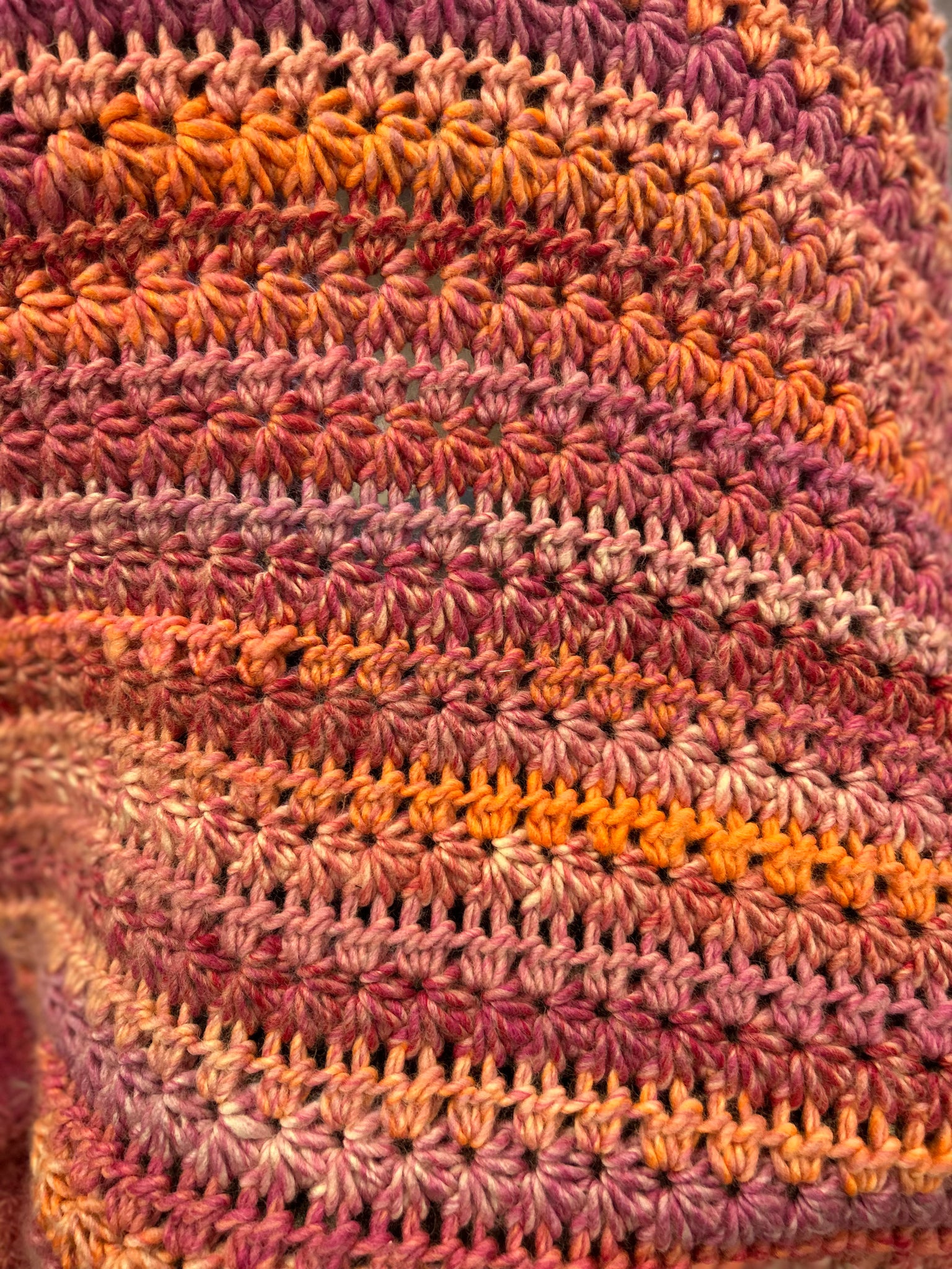 Beautifully hand crocheted chunky star stitch blanket. It is made with acrylic and wool mix yarn for extra warmth, the quality and workmanship is amazing.