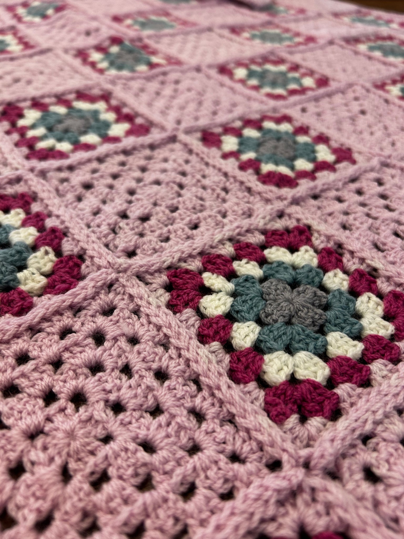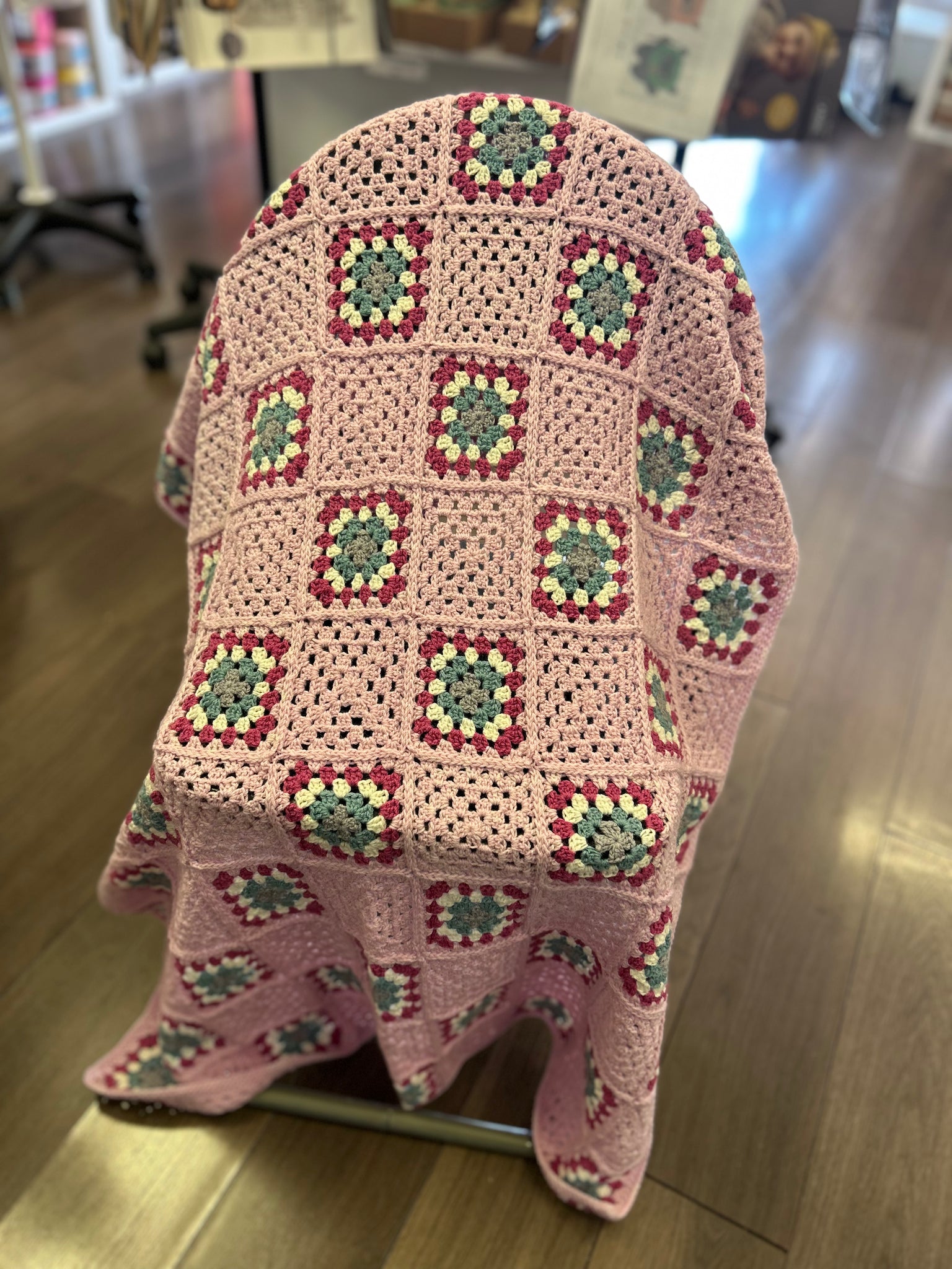 Crocheted Granny Square Cot Blanket - Australian Merino Wool