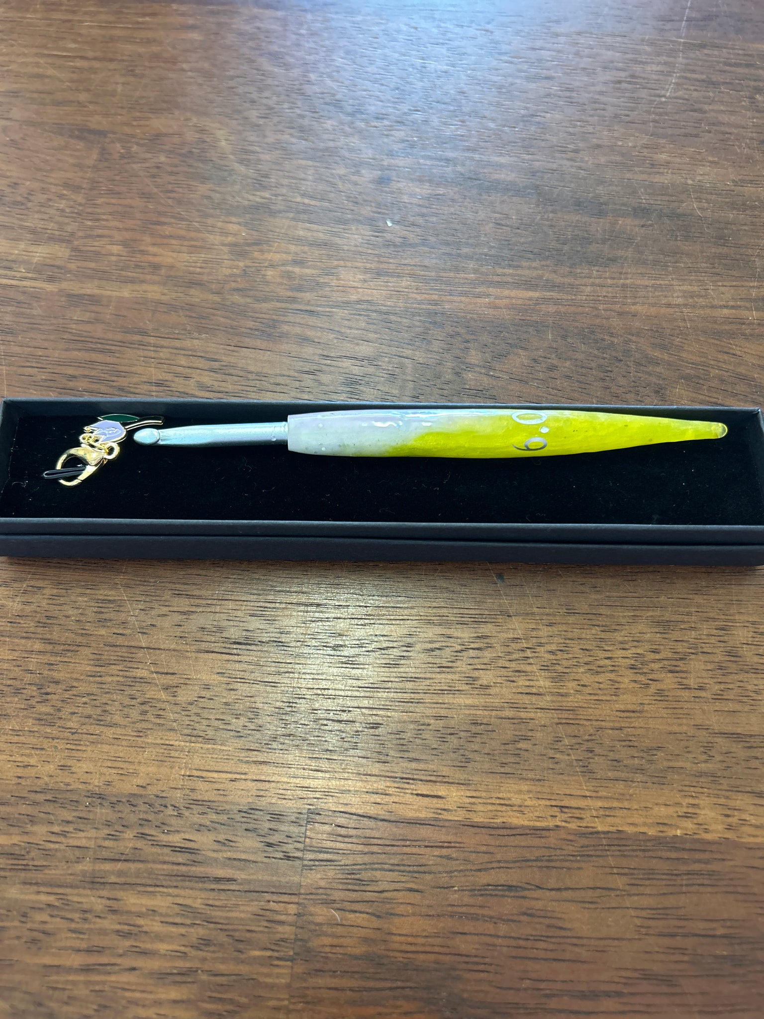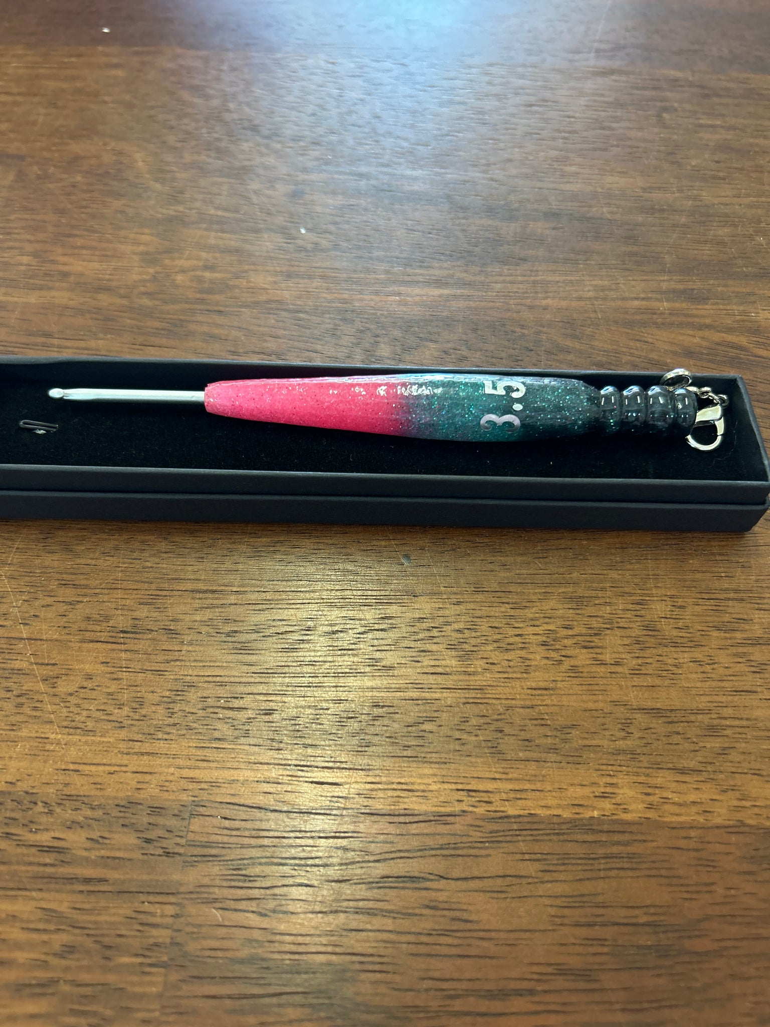 A resin and glitter crochet hook is a beautiful, eye-catching tool that adds a touch of glamour to your crafting experience. Handcrafted with care, each hook is unique, combining functionality with artistic flair.
