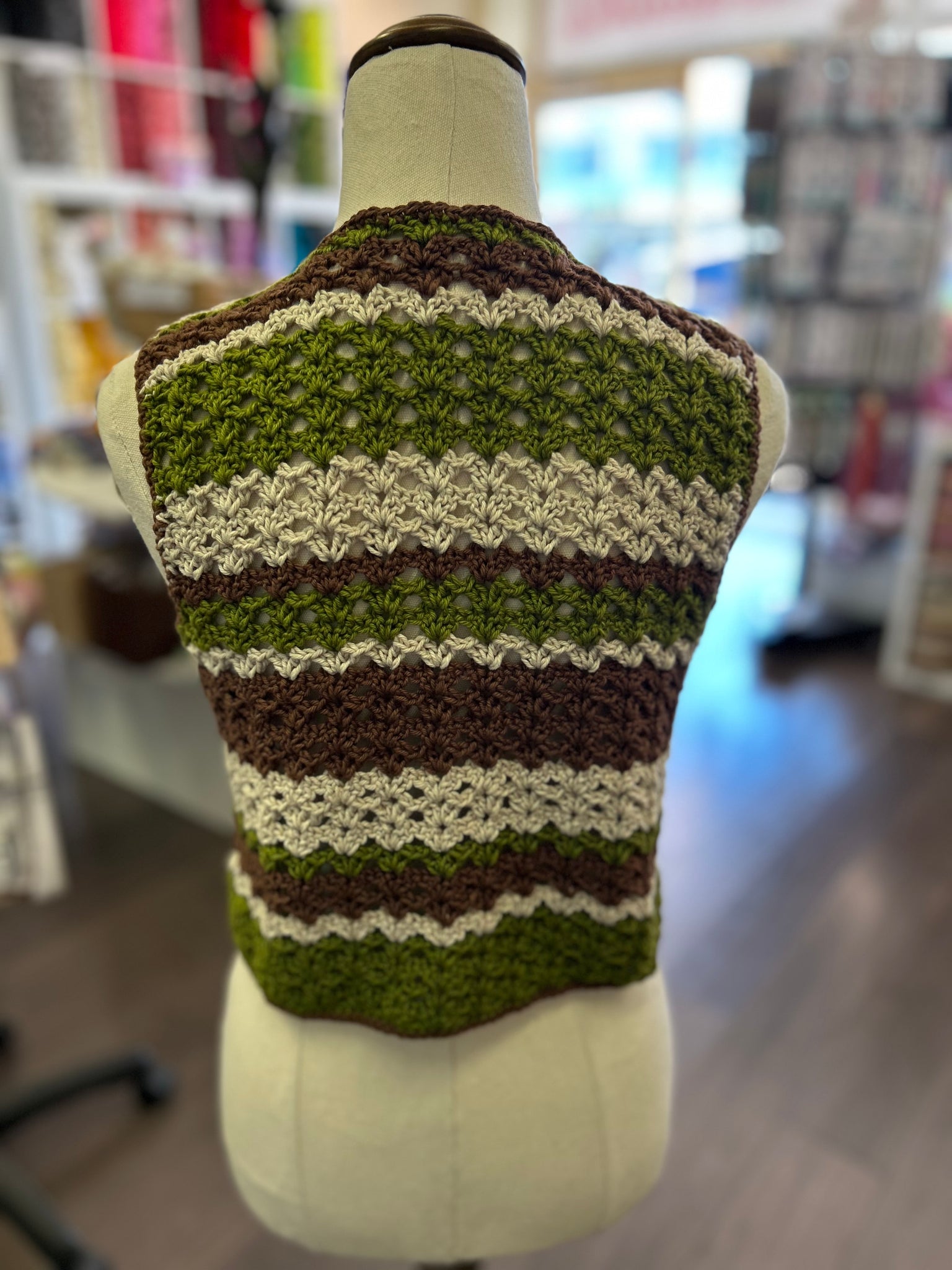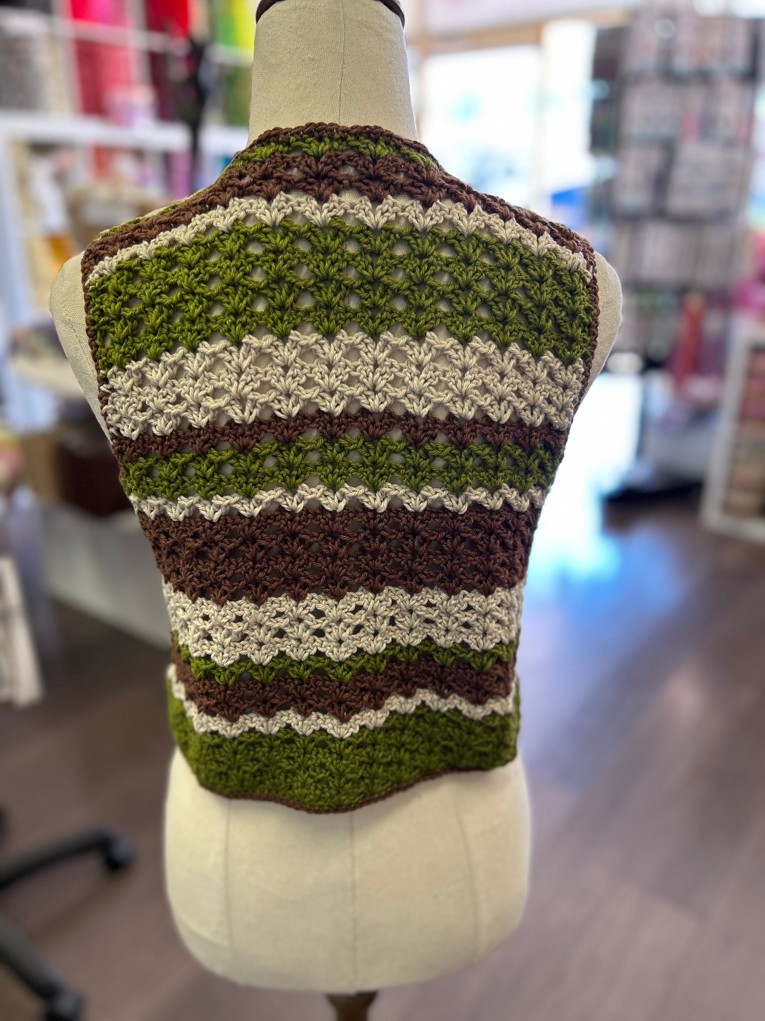 Beautifully crocheted Boho Vest made from cotton and acrylic blend yarn.
